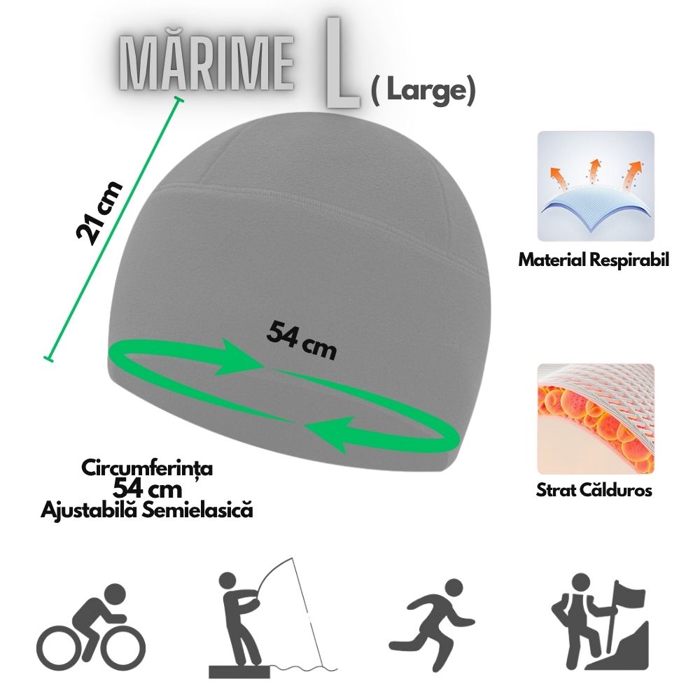 Căciula din fleece este alegerea ideală pentru zilele reci de toamnă și iarnă. Confecționată din material moale, călduros și respirabil, oferă confort sporit și protecție împotriva frigului. Se mulează ușor pe cap, asigurând o senzație plăcută la purtare, iar textura catifelată o face perfectă atât pentru activități outdoor, cât și pentru uz zilnic.