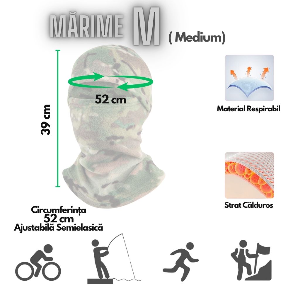 Cagula Caciula de Iarna, Camuflaj, Fleece Polar Moale, Marime M 52, Semielastica, #0658