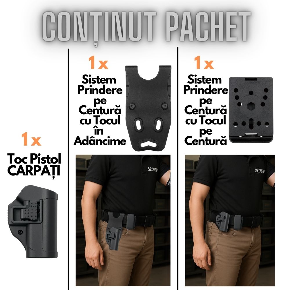 Holster Pistol CARPATI cu Prindere in Adancime sau la nivelul Centurii, Toc cu Sistem Rapid de Blocare si Deblocare, #0492