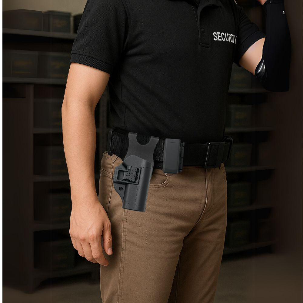 Hosterul toc Pistol prezinta o constructie durabila, oferind o protectie excelenta impotriva zgarieturilor, socurilor si deteriorarilor accidentale ale pistolului. Este prevazut cu un sistem de prindere sigur si reglabil, care permite utilizatorului sa fixeze pistolul in pozitia dorita, asigurand o accesibilitate rapida si usoara atunci cand este necesara interventia.