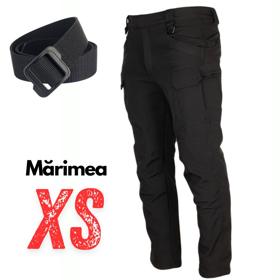 Pantaloni Tactici Softshell cu Centura Ajustabila, Impermeabili, Multiple Buzunare, Negru, #205