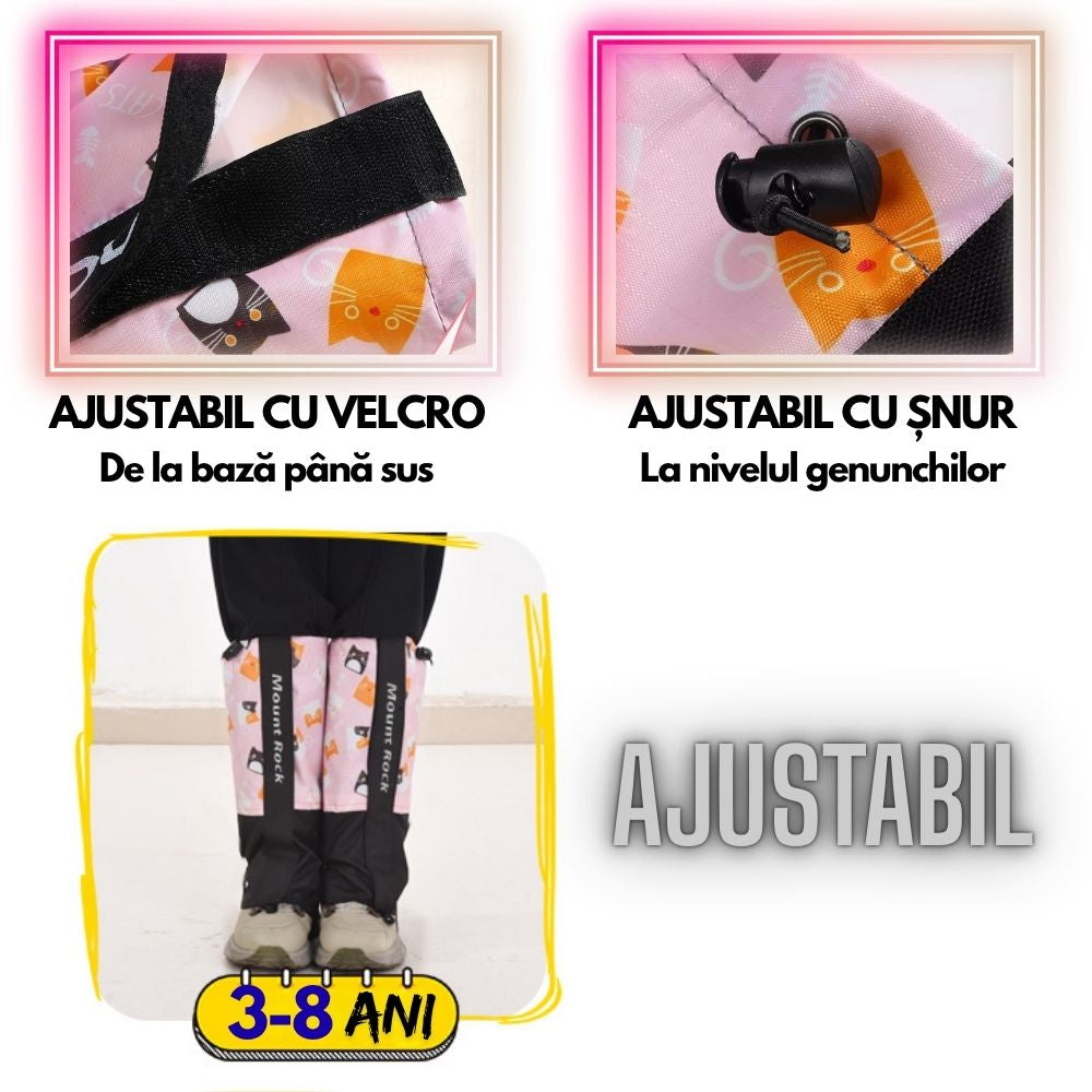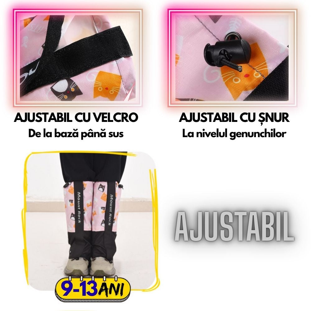 Parazapezi Impermeabile, Copii, 3-13 ani, Ajustabile cu Dublu Sistem de Prindere, Roz, #0654
