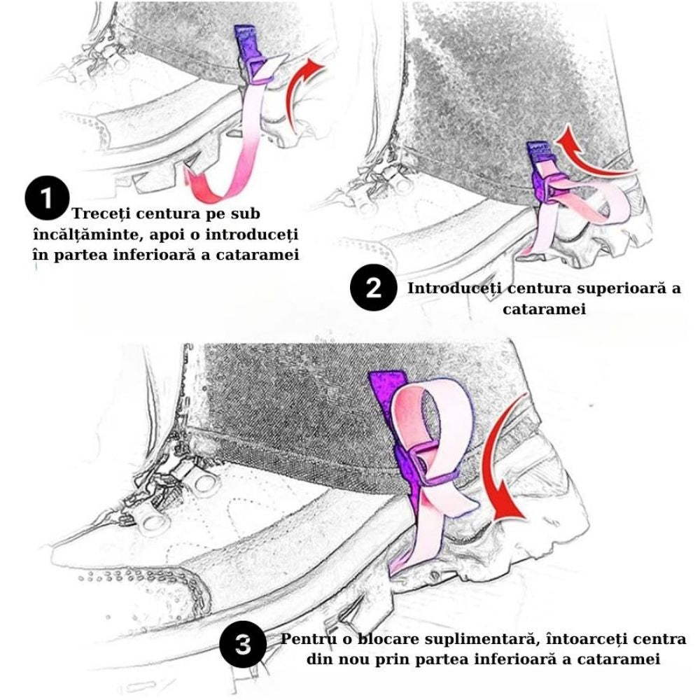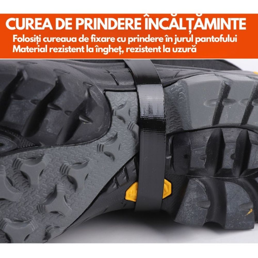 Ajustabilitate: Cu un dublu sistem de prindere pe pantof, acesti parazapezi sunt ajustabili si se pot potrivi diverselor tipuri de incaltaminte. Acest aspect ofera utilizatorilor flexibilitate in utilizare si asigura o potrivire sigura.